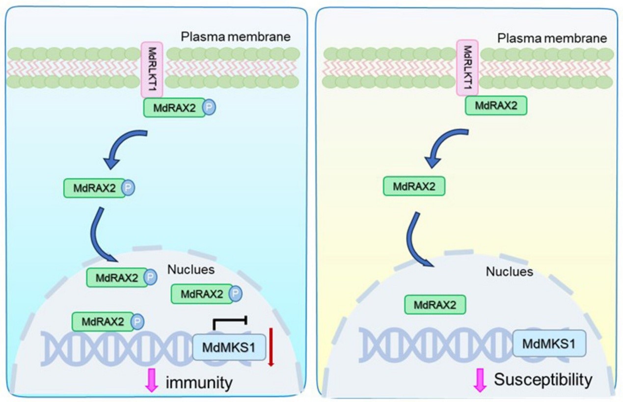 公司果树病害致灾机理及综合防控团队揭示MdRLKT1–MdRAX2–M...