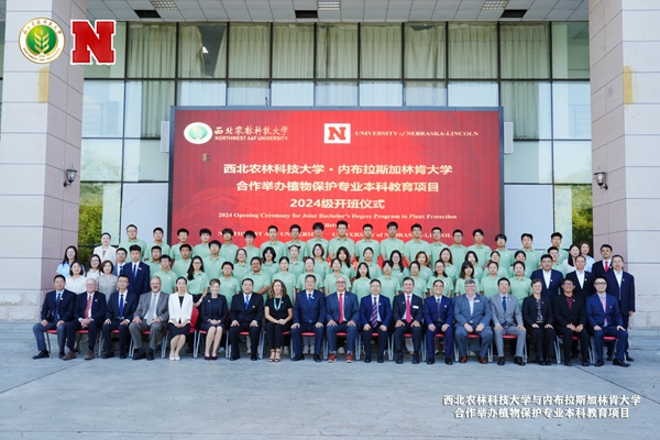 On September 21st, Opening Ceremony for Class 2024 of Joint Bachelor’s Degree Program in Plant Protection between our university and the University of Nebraska-Lincoln (UNL), was held at the Bei Xiu Shan Auditorium on north campus, NWAFU. Vice President of NWAFU, Luo Jun, Vice President of UNL, Michael Boehm, Dean of College of Plant Protection of NWAFU, Guo Jun, Dean of College of Agricultural Sciences and Natural Resources of UNL, Tiffany Heng-Moss, and heads of five departments and faculties including the Department of Plant Pathology, as well as heads of functional departments, such as the Academic Affairs Office, International Cooperation and Exchange Office, and Student Affairs Office, attended the ceremony.