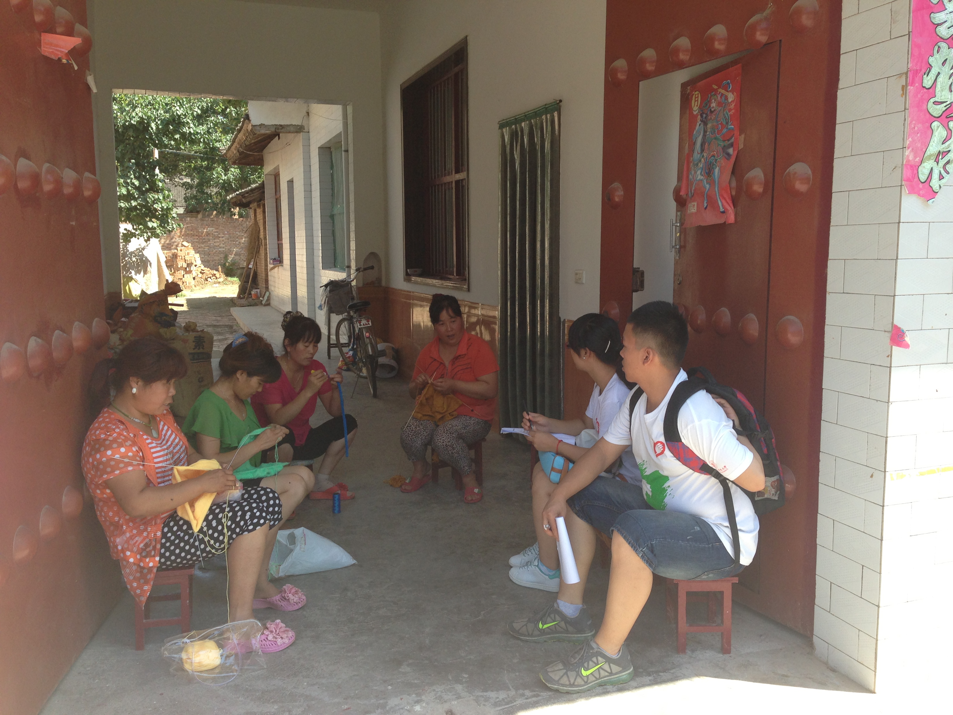 不过,我看到的却是我们所有的队员们都饱含热情,十五个人的队伍,我们的口号是we are a team! 如果你在早上八点经过西区宿舍时,定能看到一群身着统一服装气势昂扬的我们,我们一起下乡,开始我们的欢乐调研。