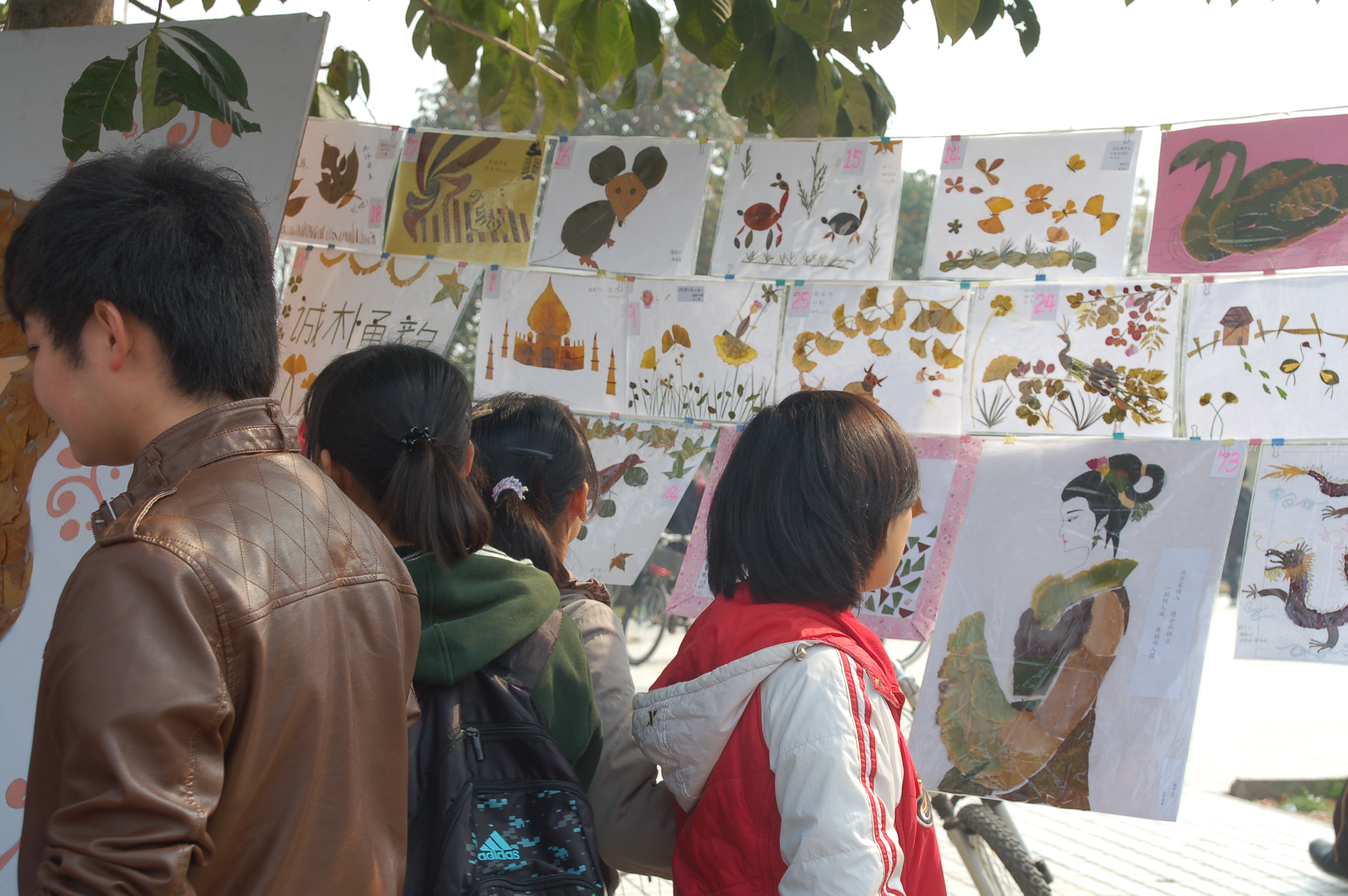 活动过程中,不少同学均在感叹用那不起眼的落叶竟然可以拼凑出这么漂亮的图案,不少同学甚至用手去触摸拼图,感受落叶重新释放的艺术气息。在秋天这个诗情画意的季节里,同学们抛开了黛玉葬花的伤感,加上自己天马行空的创意,拾起那片片落叶来展现公司的专业特色,让那些飘零的树叶重新绽放了它们的生命。叶子在同学们创造性的思维中再度飘扬,本次画展向全校同学们呈现了一场非凡的视觉盛宴!