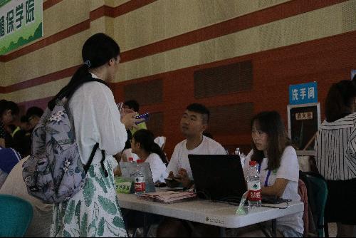 上午八点整,迎新工作正式开始,新生及家长陆陆续续到达英国上市公司365迎新地点。首先接待组的同学引导新生进行签到,并向同学和家长介绍公司概况,同时邀请家长在公司休息区休息。随后,引导组的同学带领新生进入北绣,办理入学登记、领取校园卡并交纳保险费,同时,业务组的同学和老师会带领需要办理生源地贷款及需要缴纳学费的同学填写“绿色通道”申请表和缴纳费用。最后,由引导组的同学带领新生到宿舍楼办理宿舍入住,并到八号教学楼领取军训服。迎新的同学不顾天气炎热,以饱满的热情迎接每一位新生,而新同学也十分感谢每一位接待自己的学长学姐,在入学伊始便感受到了西农学子的淳朴与热情。