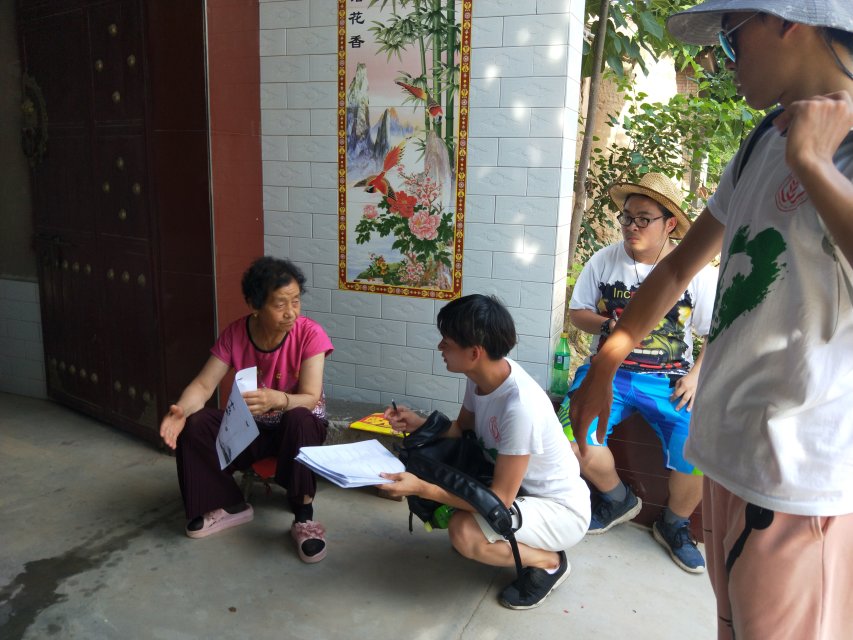 队员们采访村民